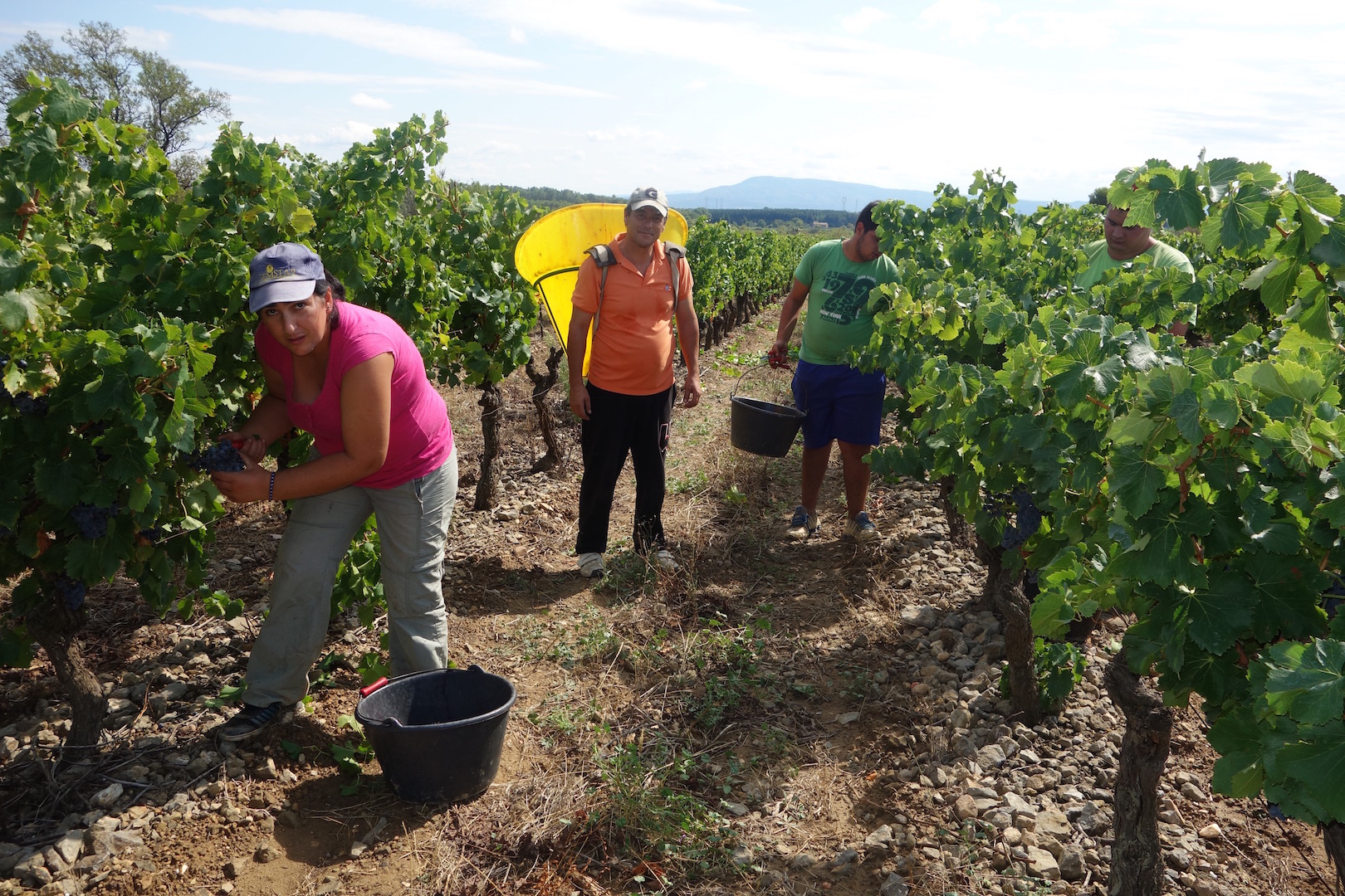 Les vendanges ont débuté le 02 septembre avec le viognier de la Martelle à Siran, puis se sont étalées jusqu’au 30 septembre avec le dernier grenache noir et le malbec de la Combe Marie, sur le Petit-Causse au Nord de La Livinière. Ce fut un mois de septembre essentiellement chaud et sec, avec trois modestes épisodes pluvieux, rapidement séchés par le vent, et vite oubliés.